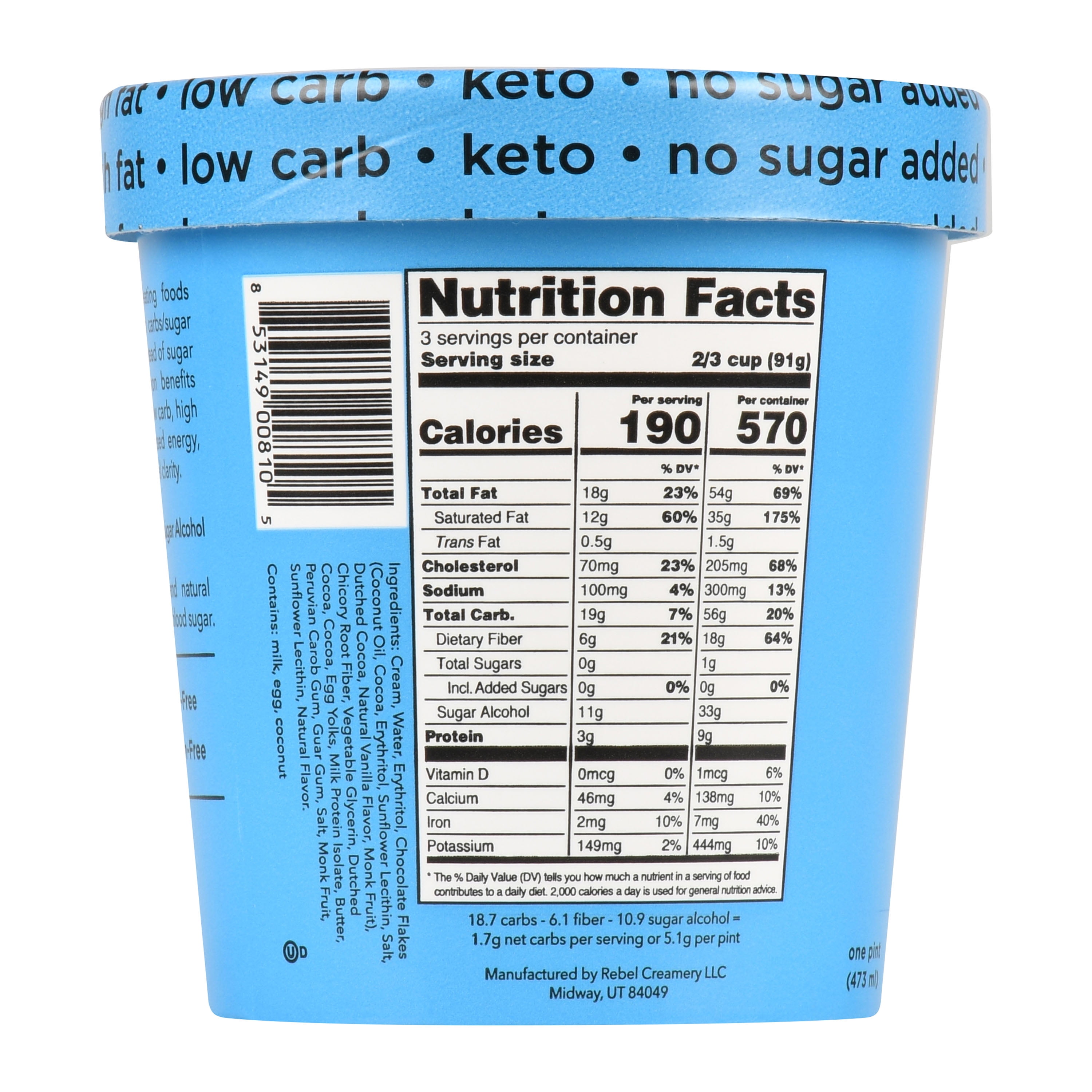 The high fat content gives it the creamy texture of real ice cream. In other words, this is real ice cream without any of the sugar! Below i will rank the flavors from best to least. Jun 02, 2019 · not 6 net carbs per serving… it's 6 net carbs for the whole dang pint! What we liked & disliked we love that rebel ice cream is super convenient and low carb. 71% fat, 24% carbs, 5% protein. There are 140 calories in 1/2 cup (68 g) of rebel chocolate ice cream. Jun 09, 2019 · rebel creamery isn't a low fat ice cream. It's made for keto so the ice cream is full bodied with plenty of fat. The high fat content gives it the creamy texture of real ice cream. The perfect blend of natural sweeteners gives it the sweetness of real ice cream. The perfect blend of natural sweeteners gives it the sweetness of real ice cream. Is rebel ice cream really keto friendly?